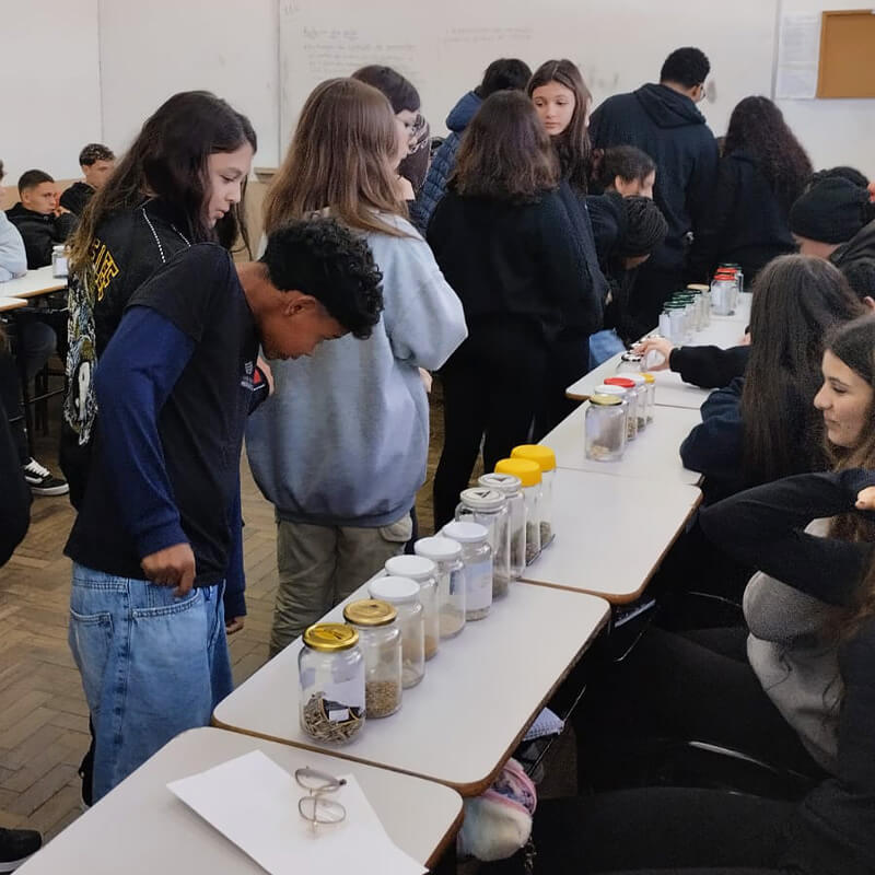 Durante a atividade, os alunos não apenas coletaram sementes de diferentes espécies, mas também prepararam apresentações para compartilhar seus conhecimentos com outras turmas da escola. A proposta foi aproximar a teoria da prática, permitindo observar a diversidade de formas, tamanhos e cores das sementes e estimular a curiosidade científica dos colegas visitantes.